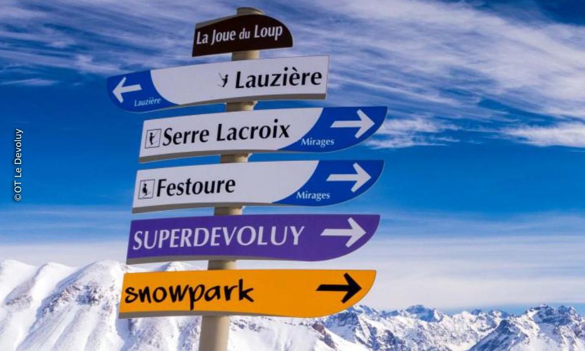 - A Superdevoluy : Téléskis Combillon, Cros + Tapis D-Izzy Land + Télésiège du Pelourenq